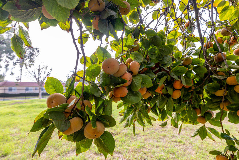 사진: 추수감사절을 기다리는 익어가는 교회 주렁주렁 달린 교회 감나무에 감들 PHOTO BY O. OH